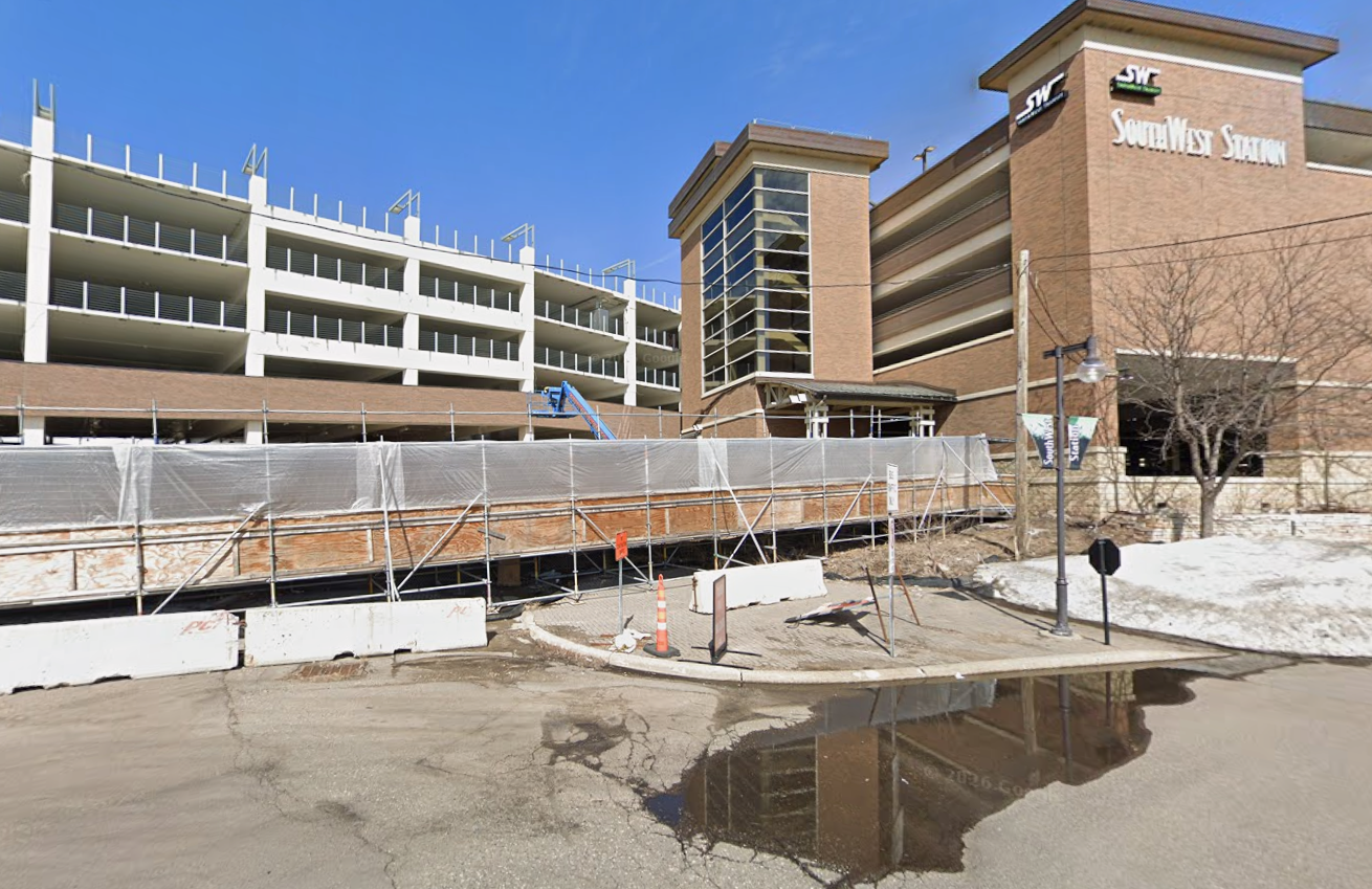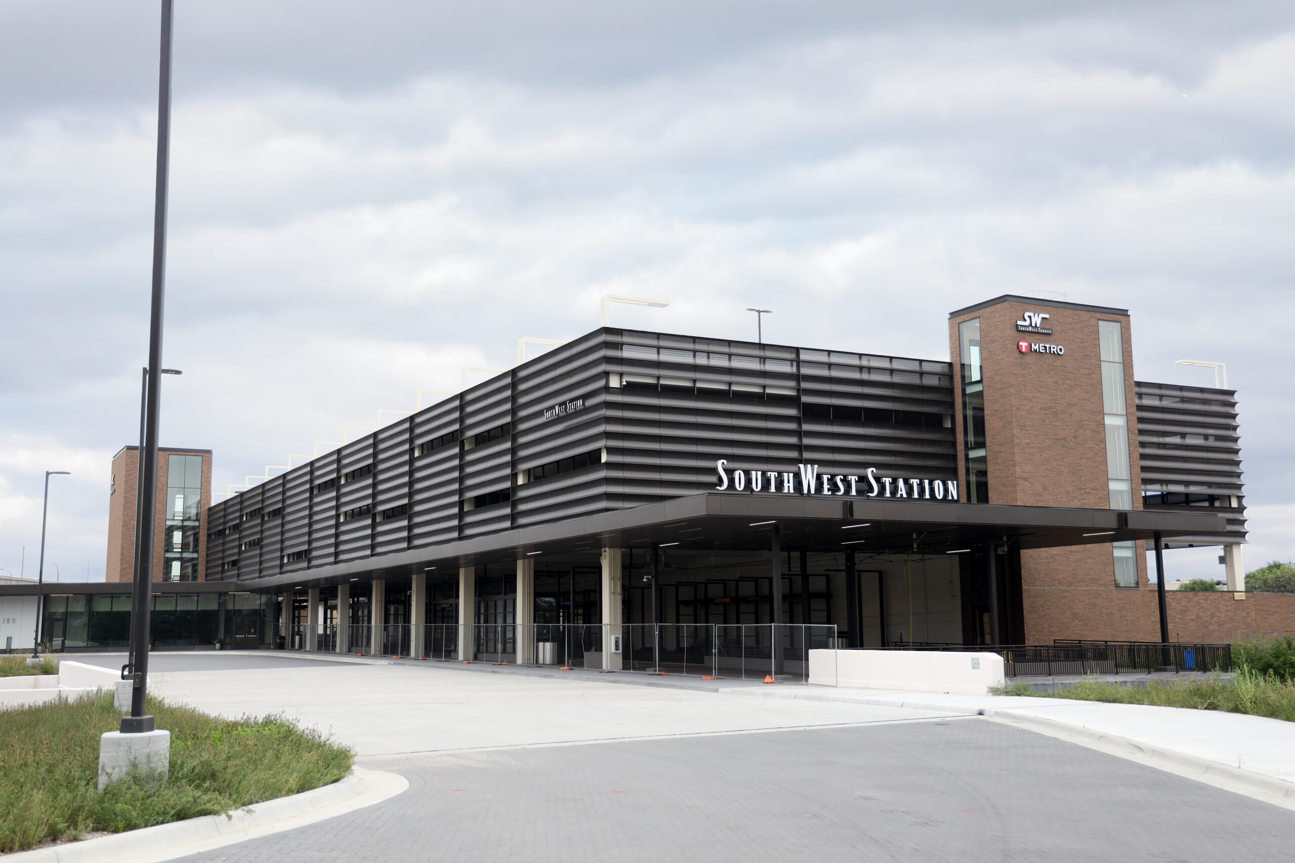 The completed Southwest Station parking structure now stands as a recognizable part of the transit hub. Located near the interchange of Interstate 494 and U.S. Route 212, the civic infrastructure project is visible to thousands of drivers each day as they pass through the area.